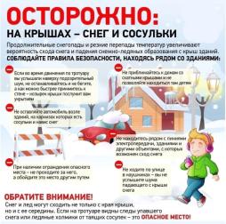 В связи с активным таянием снега возможен сход снежных масс и сосулек с крыши зданий. Сход скопившейся на крыше снежной массы очень опасен!